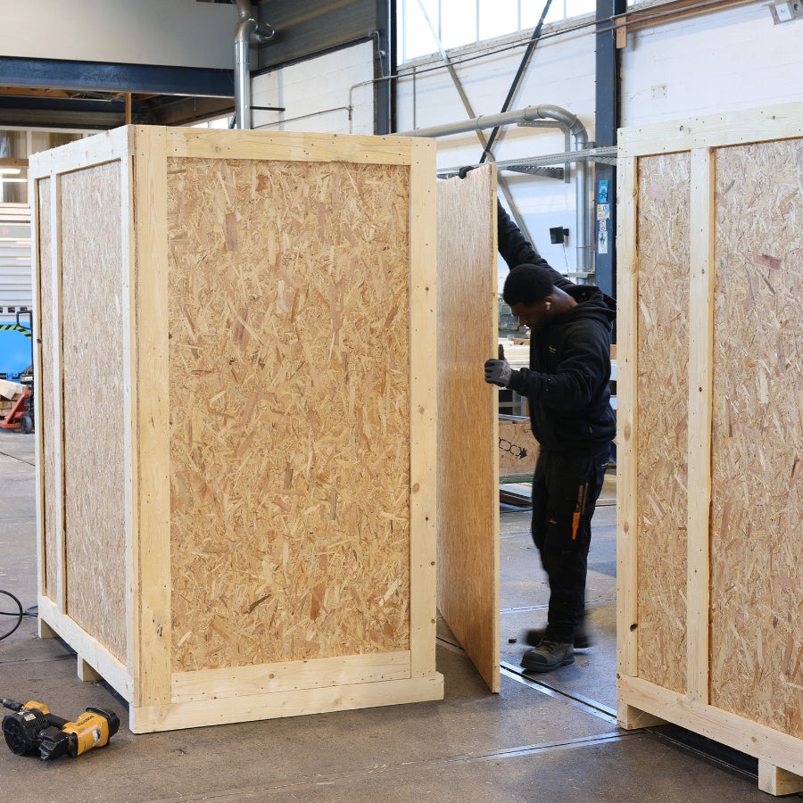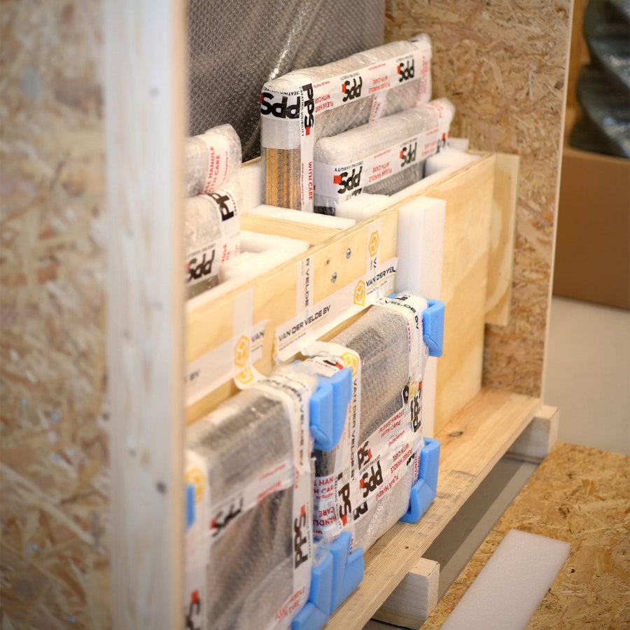 When you choose Van der Velde, our experienced packers will first measure your product accurately on-site. This ensures that we provide a crate or transport pallet that is perfectly tailored and suitable for the transport method you have chosen. In short, you benefit from expert craftsmanship and optimal protection during transport!