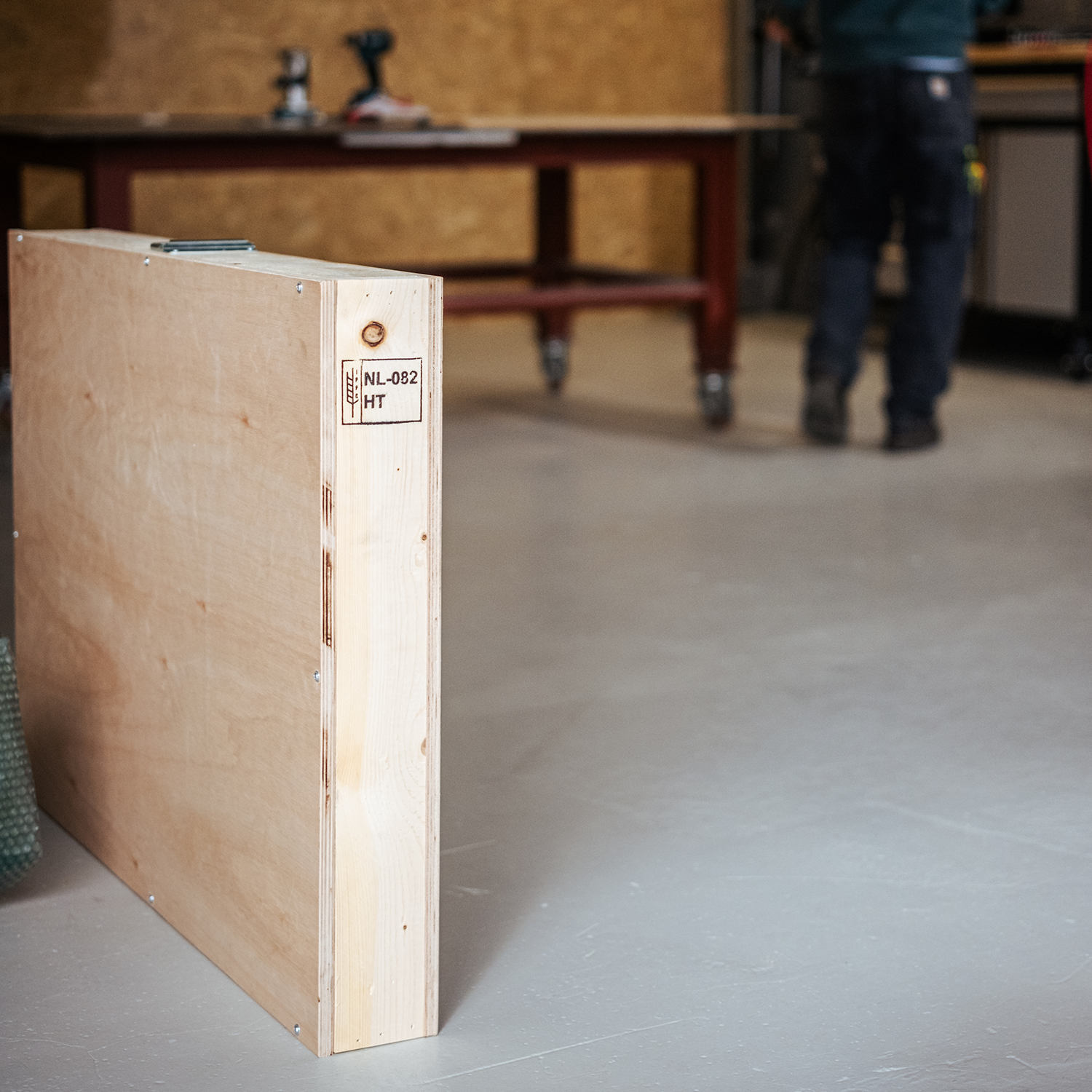 Onze verpakkingen zijn gemaakt van hittebehandeld hout en ISPM-gecertificeerd volgens de IPPC-standaarden. Dankzij ons registratienummer 082 kunt u uw kunstwerk zonder problemen internationaal vervoeren. Daarnaast bieden we duurzame verpakkingsopties die zowel milieuvriendelijk als effectief zijn.